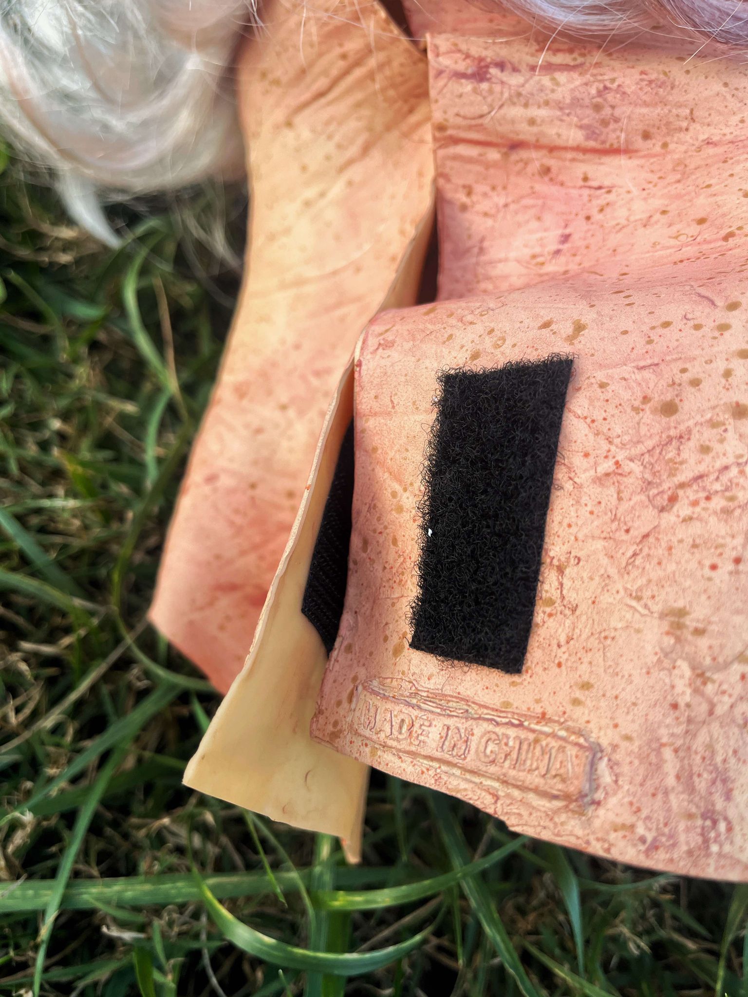 Step into the eerie world of Grandma with this exclusive, limited-edition replica mask, hand-painted and splattered by the film’s writer/director, Bobby Canipe Jr. This unique piece is crafted with attention to detail, featuring velcro straps for a snug fit and black mesh under the eye holes to perfectly conceal your gaze. Each mask includes a custom Grandma wide hang tag and vanity tag for that extra collector’s touch. Plus, it’s signed on the inside by Bobby Canipe Jr. himself, making this a must-have for any horror enthusiast and fan of the film!